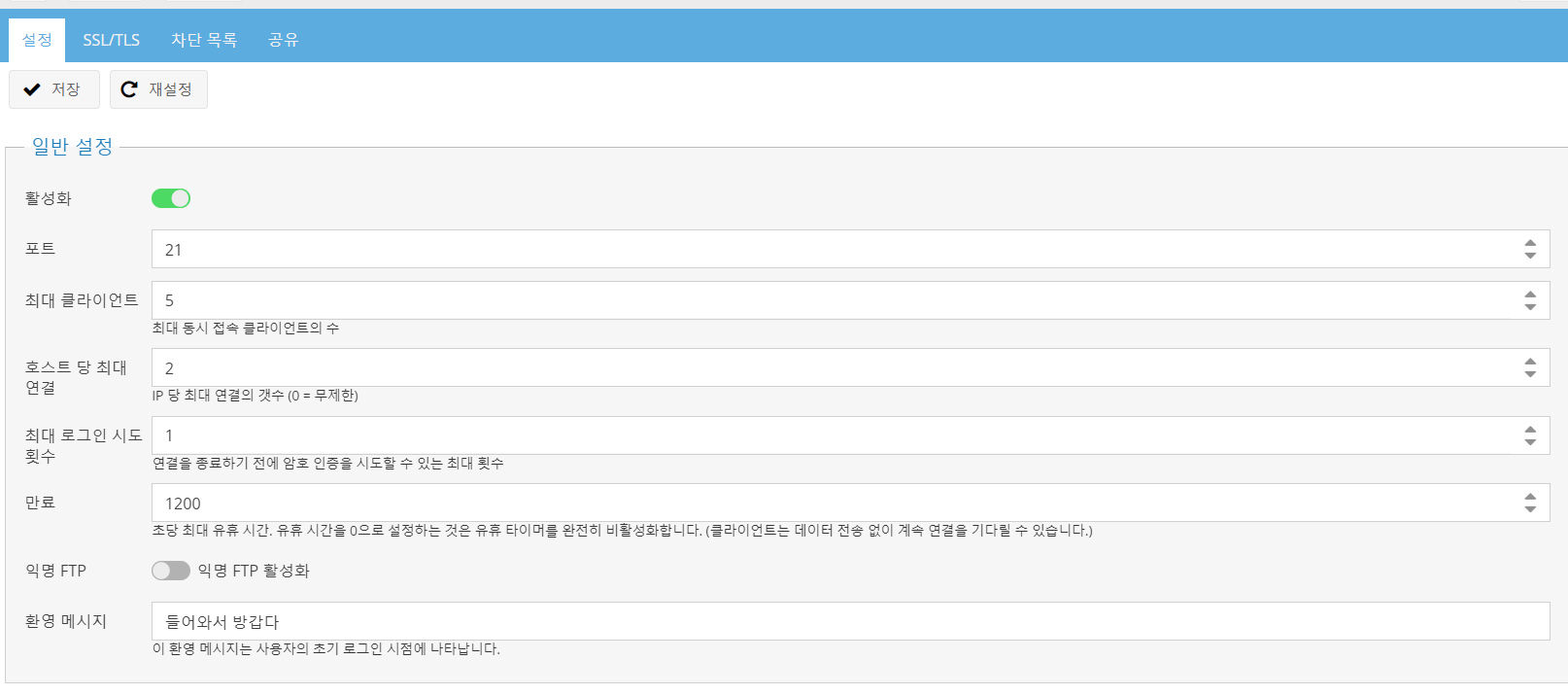 5. 이제 20, 21번 포트를 개방해주고 접속해서 사용하면 된다.