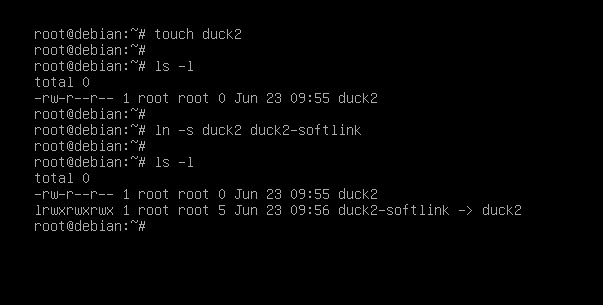 touch duck2로 duck2파일을 만들고 ls -s duck2 duck2-softlink로 duck2의 소프트링크인 duck2-softlink를 만듭니다.