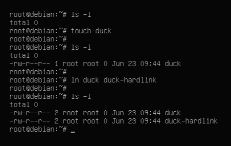 touch duck 로 duck라는 파일을 만들고 ln duck duck-hardlink로 duck의 하드링크파일 duck-hardlink를 만들었습니다.