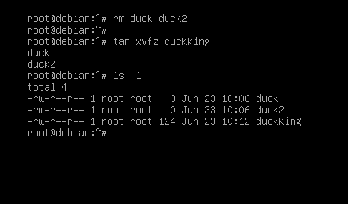 rm duck duck2로 기존의 duck duck2 파일을 지우고 tar xvf duckgood로 통합을 풀었더니 duck duck2파일이 다시 나왔다.