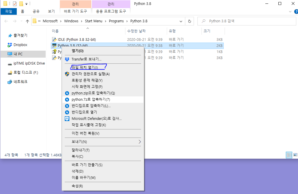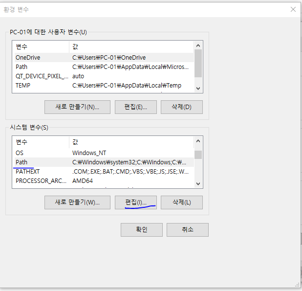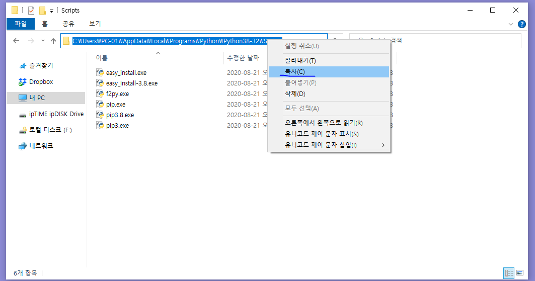 새로 만들기해서 아까 복사했던 Python폴더랑, Python\Scripts 폴더를 만들어줌