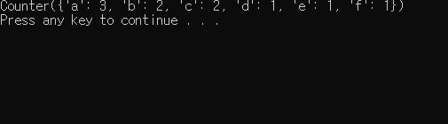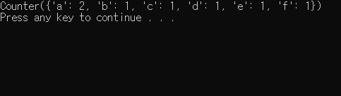 1. Colletions 의 Counter는 컨테이너에 동일한 값을 편리하고 빠르게 개수를 세도록 하는 것